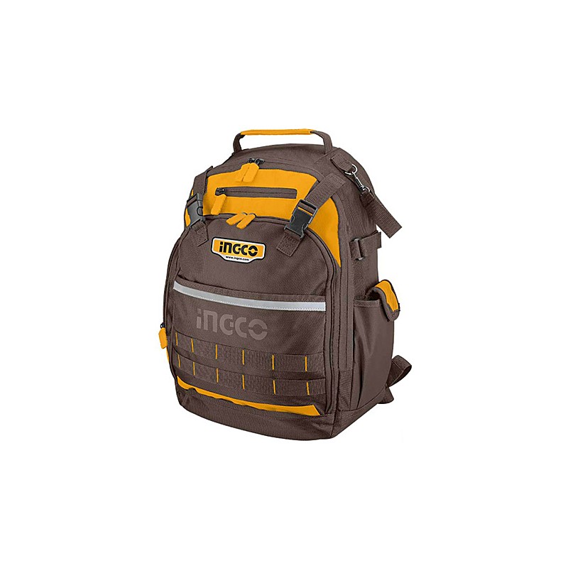 Zaino in poliestere con maniglia per il trasporto. Completo di un vassoio interno estraibile e tasche esterne. Dimensioni 38x17x46 cm.