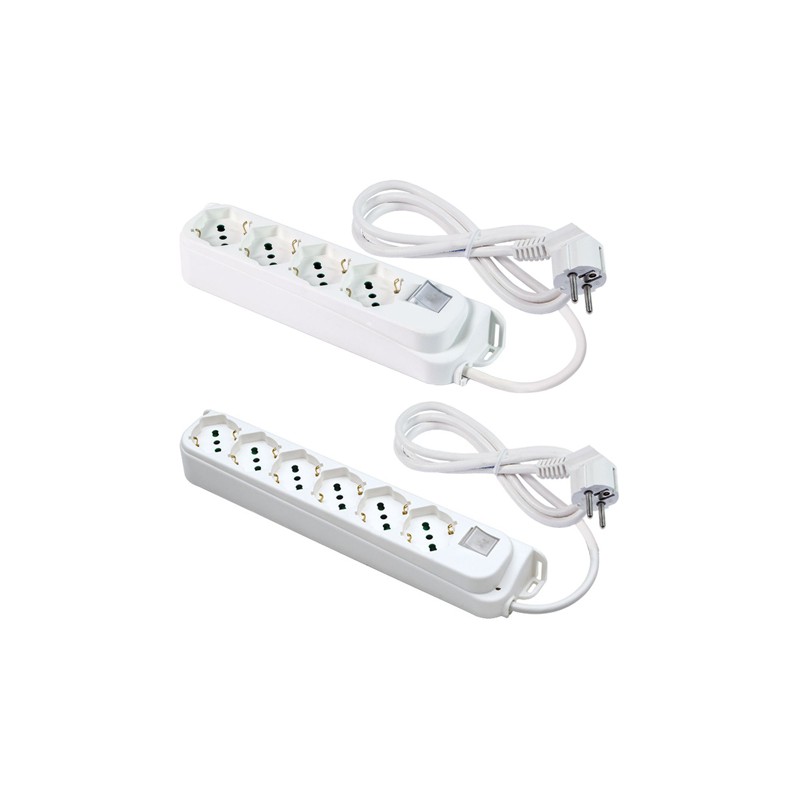 Lunghezza del cavo 1,5 m. Sezione cavo 3x1 H05VV-F mm2. Spina Schuko 16A. Colore bianco. Con interruttore. Modello = numero prese bipasso/schuko