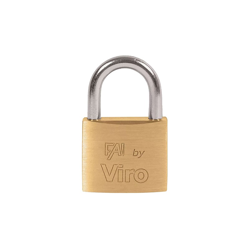 Lucchetti rettangolari in ottone satinato con spigoli smussati. Arco in acciaio cementato e temprato. Chiave estraibile sia a lucchetto chiuso che aperto. Modello = larghezza corpo mm