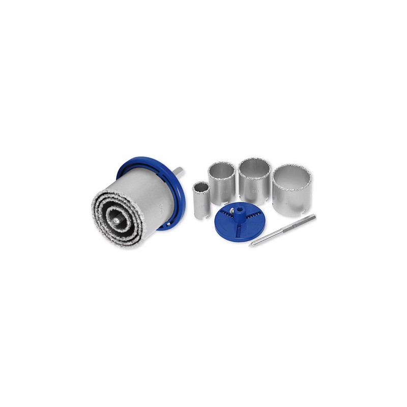 Sega a tazza con 4 lame con riporto in metallo duro e punta di centraggio. Per forare su muratura e pietra. Per realizzare con precisione fori per impianti elettrici e sanitari. Profondita' di taglio 55 mm. Dimensioni seghe a tazza 33 - 53 - 63 - 73 mm. Max rpm 1500.