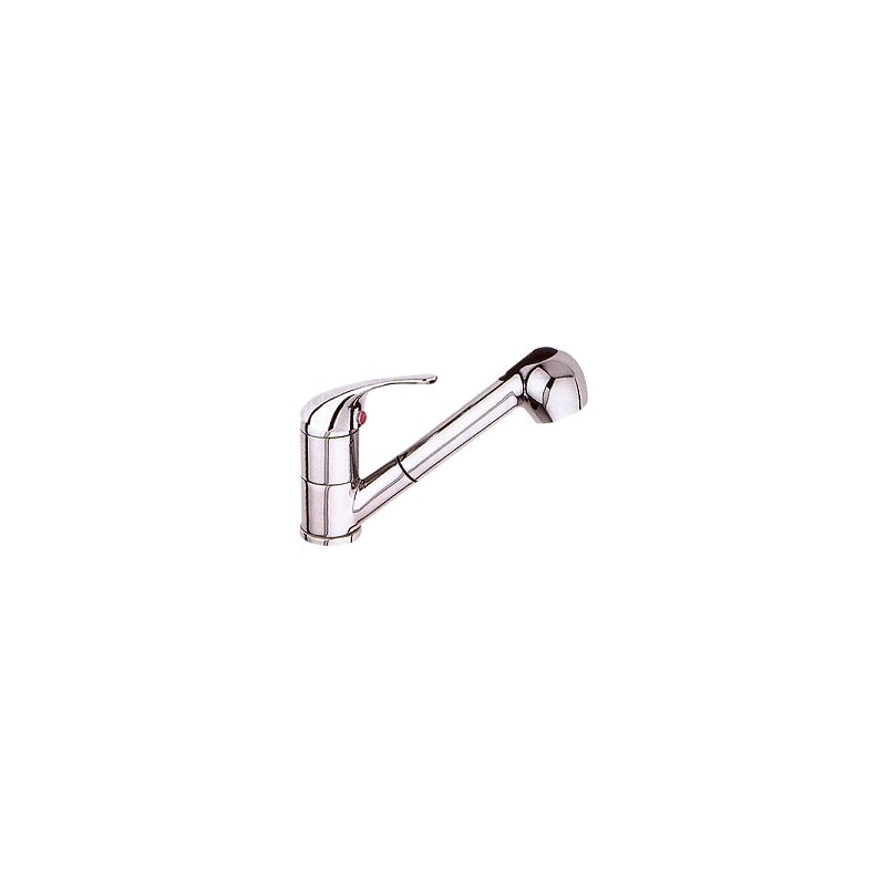 Miscelatore monocomando. Cartuccia a dischi ceramici ad alta resistenza. Con doccetta estraibile. Fornito di 2 tubi flessibili da cm 30. Made in Italy