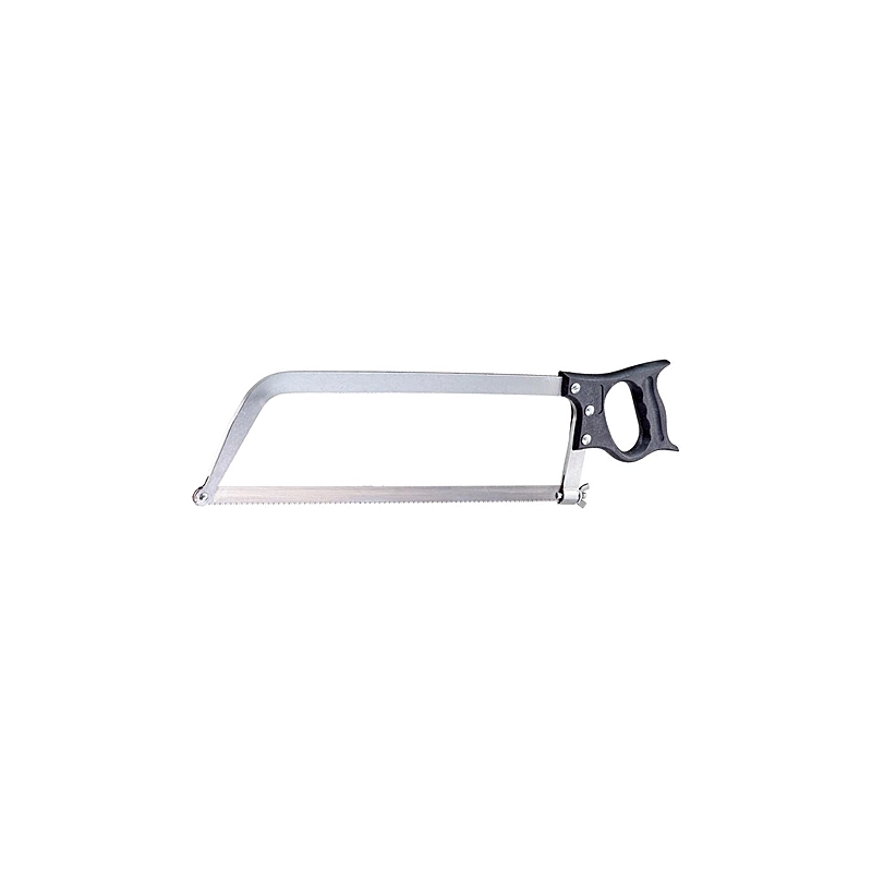 Sega per ossa in acciaio lucido adatto al contatto per alimenti, con manico in pvc antiurto. Telaio in acciaio piatto 22x7 mm. Tensione lama con dado e alette. Lama in acciaio inox. Modello = lunghezza lama
