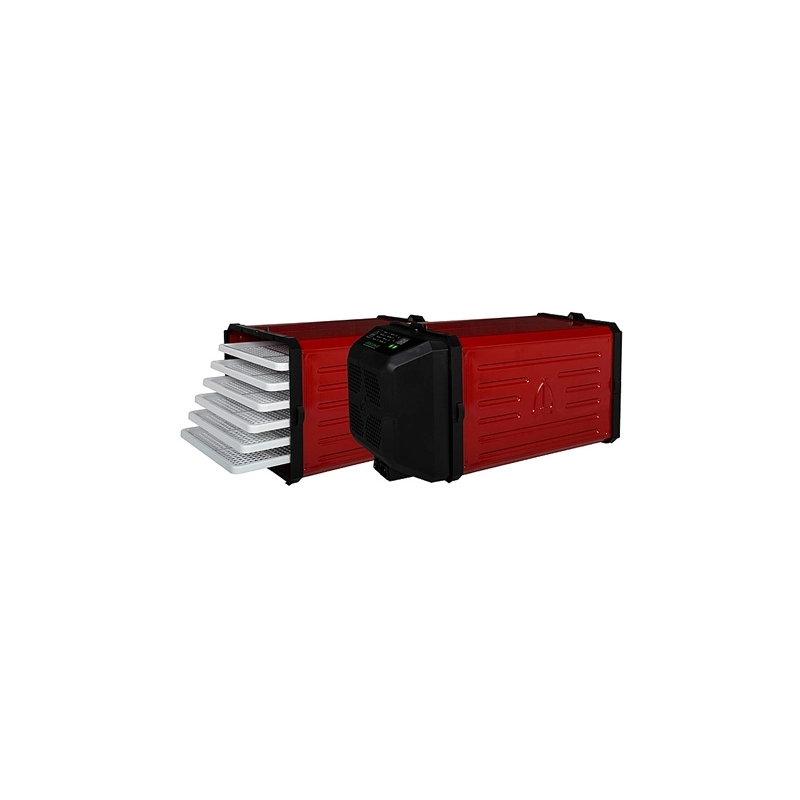 Potenza 500 Watt. Struttura in acciaio verniciato e nylon caricato. 6 cassetti per l'essiccazione in ABS alimentare. Superficie totale di essiccazione 5500 cm2. Sistema di flusso d'aria orizzontale con controllo della temperatura. 5 diversi di programmi automatici e 1 personalizzabile. Display digitale e timer. Con piedini in gomma antiscivolo e antivibrazione. Dimensioni 27x26x50 cm. Peso 5,5 kg.