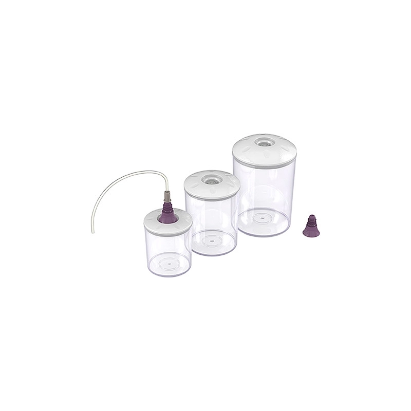 Set contenitori in materiale atossico, con valvola brevettata sul coperchio per creare sottovuoto e tappo bottiglia. 1 da 0,75 l, 1 da 1,5 l, 1 da 3 l. Strutture impilabile. Adatti al congelamento.