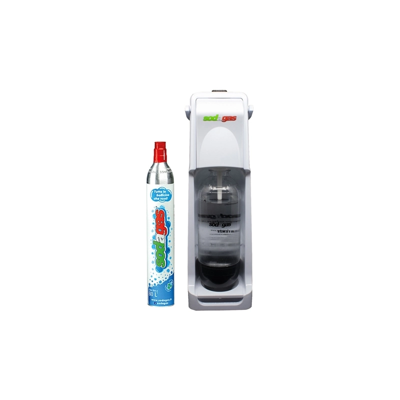 Gasatore domestico per acqua "BOLLICINO" + CILINDRO Co2 + bottiglia plastica. Dimensioni 42x13x19 cm. Colore nero e bianco. Capacita' gasatura fino a 70/80 litri. Consente di gasare l'acqua nataurale di casa. Si consiglia di raffreddare l'acqua prima della gasatura per una maggior durata delle bombole gas.