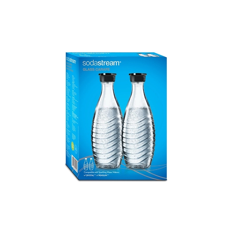 Bottiglie in vetro per gasatori Crystal e Penguin. Contenuto 0,75 lt. Dimensioni bottiglia 18,8x9,2x26h cm. In confezione da 2 pz. Compatibile solo con gasatori per bottiglie in vetro.