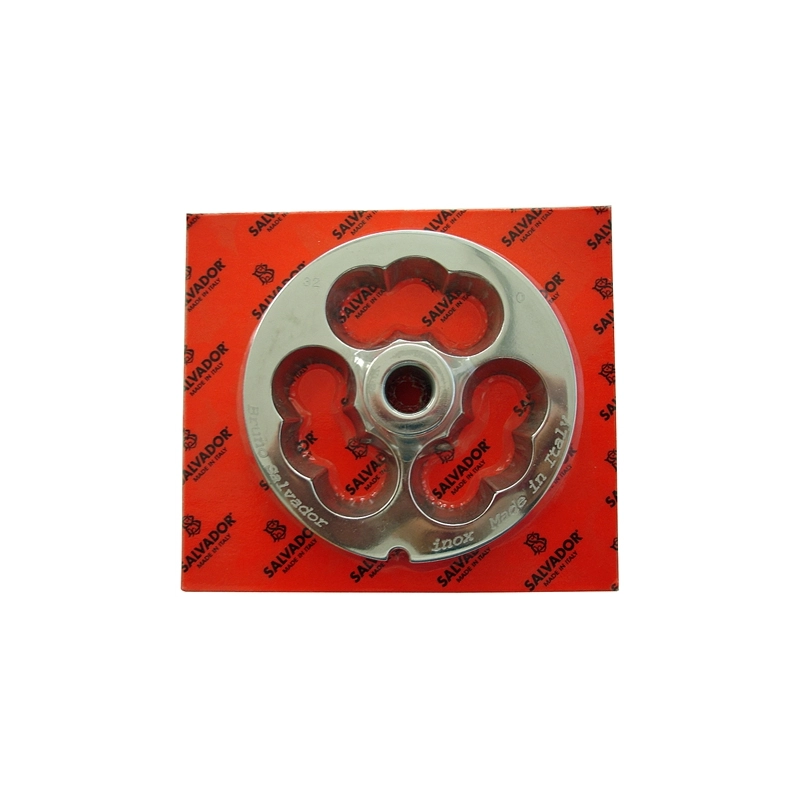 Piastra in acciaio inox con lunette per cotiche. Modello = n. tritacarne