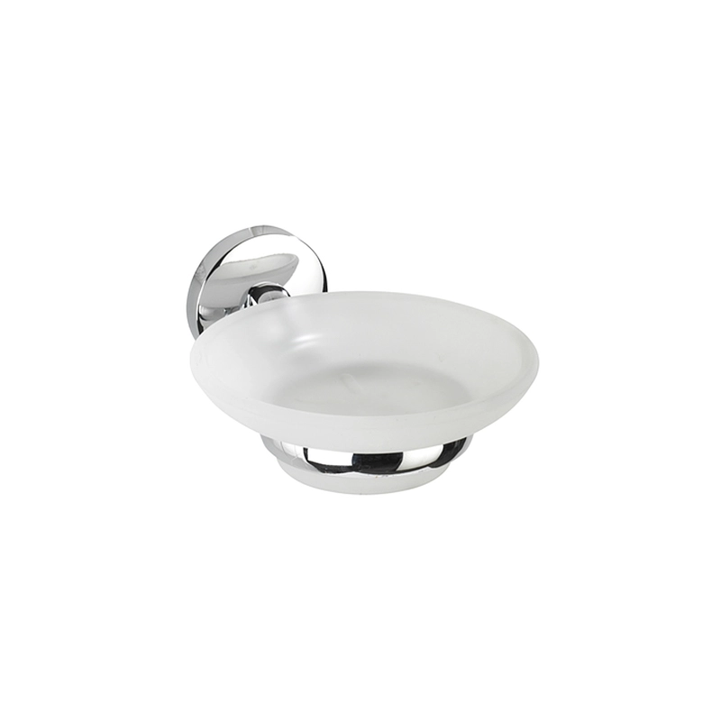 Cromato. Piatto in vetro satinato. Dim. 11x13,5x5,5 cm. Peso 315 gr. Viti e tasselli inclusi. Sistema di fissaggio POWER LOC per il fissaggio senza viti da acquistare a parte.