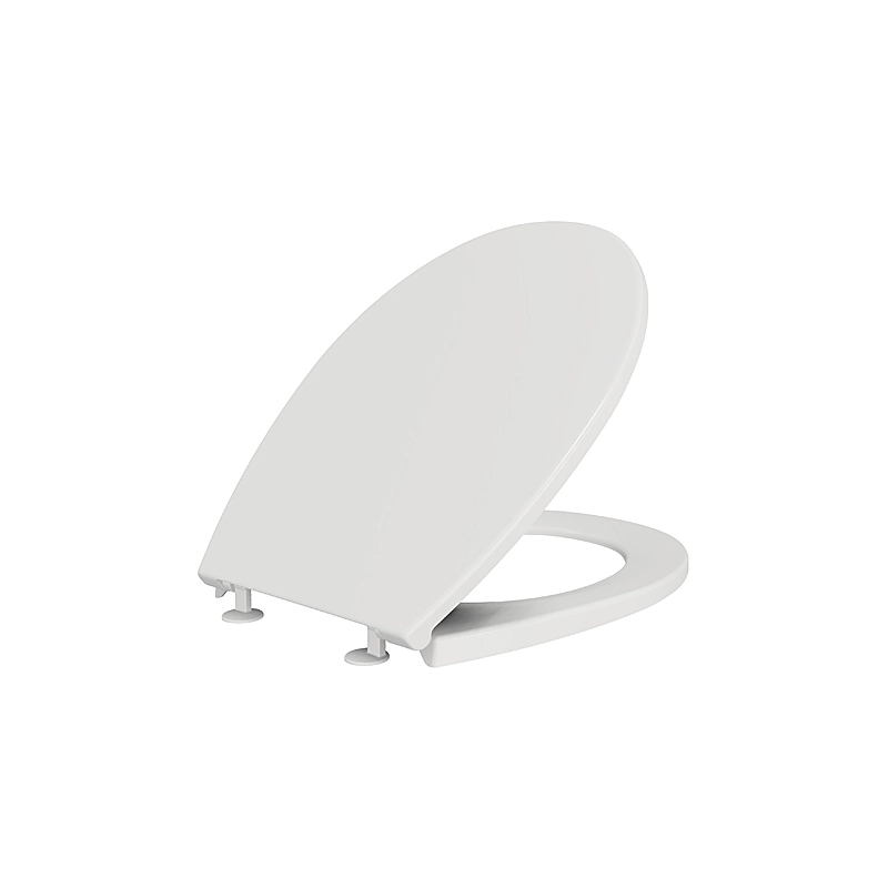 Sedile WC in materiale termoplastico, con forma universale per ceramiche a forma ovale. Con cerniere in nylon H014. Peso 0,72 kg. Cerniera avvitabile dal basso. Per WC dimensioni: larghezza cm 35,2, lunghezza da bordo anteriore fino al centro dei fori cm 42,1 - 43,1, interasse fori cm 15,5.