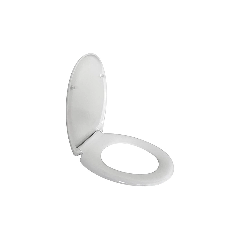 Sedile Wc in plastica termoindurente bianca. Chiusura rallentata con coperchio piatto. Fissaggio dall'alto. Rimozione veloce con tasto per la pulizia del vaso. Dimensioni 47x37 cm. Peso 2 kg.