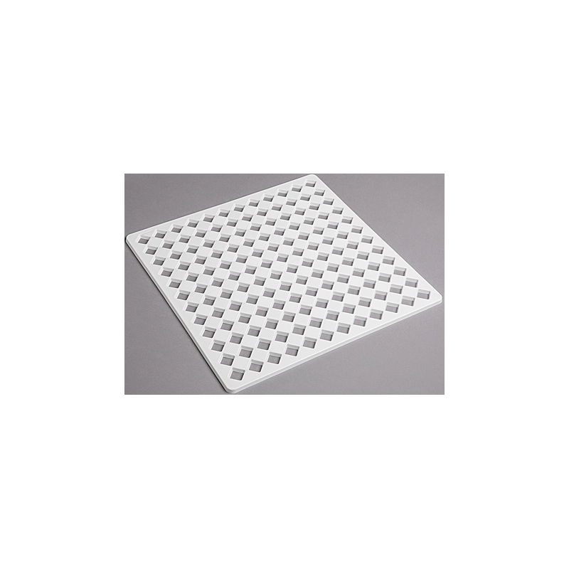 Pedana doccia bianca in pvc flessibile con ventose di tenuta sul retro. Dimensioni 48x48 cm.
