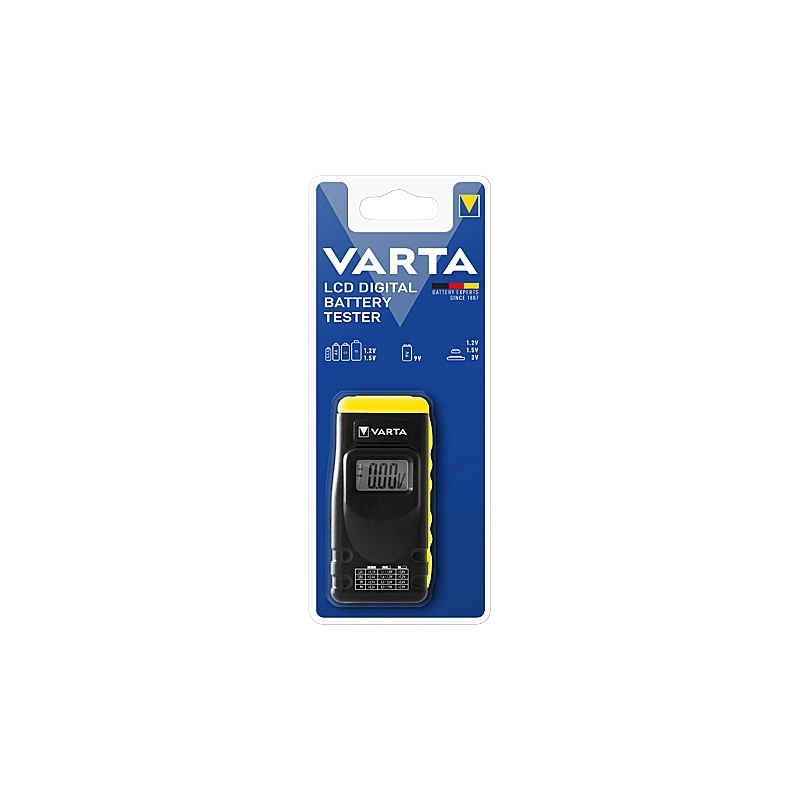 Tester con display LCD. Controlla le batterie dei formati piu' importanti, monouso, ricaricabili, elettronica e bottone. Dimensioni 4x1,5x9 cm. Funziona con 1 pila LR44.