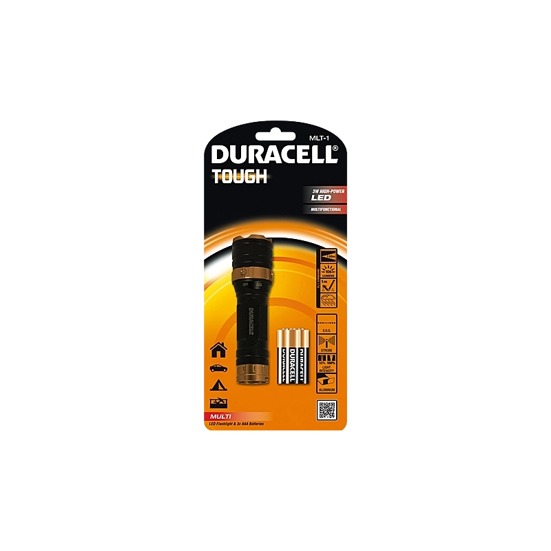 Torcia molto potente con corpo in alluminio a 1 led, 106 lumen. Funzione SOS, regolazione intensita' della luce. Funziona con 3 batterie AA (incluse)