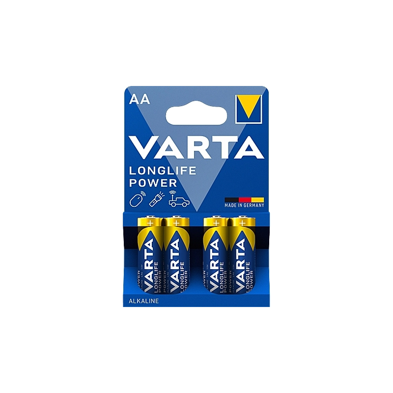 Blister 4 batterie AA, Alcalina High Energy Stilo. Per prodotti ad elevato assorbimento di energia.