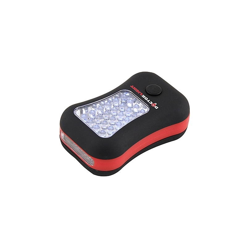 Lampada a 24 LED in materiale "soft touch" antiscivolo. 16 ore di autonomia. Funziona con batterie 3xAAA non in dotazione. 12 Lumen. Dimensioni 90x55x35 mm. Dotata di gancio posteriore e magnete.