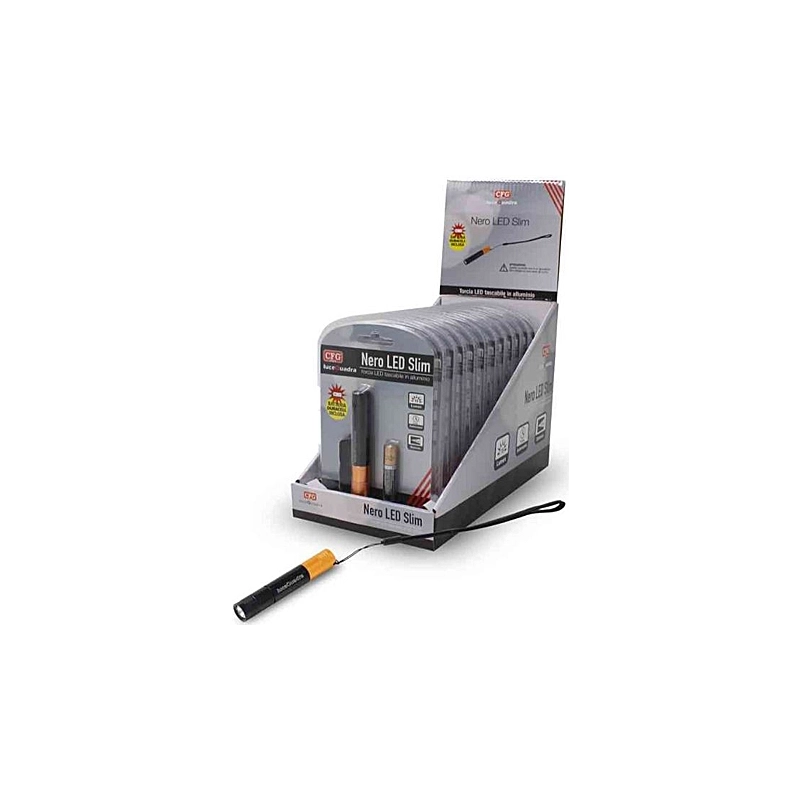 Torcia in alluminio a 1 Led da 0,5 Watt. 15 lumen. Autonomia 3 ore. IPX4. Funziona con 1 batteria AAA Duracell (inclusa).
