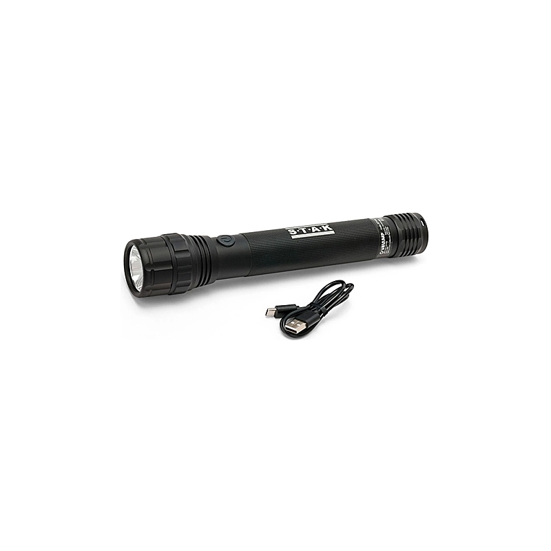 Torcia Led 40W ricaricabile. Funzione powerbank. In alluminio. IPX7. Potenza massima 5000 lumen. 6000K. Munita di 2 batterie Li-ion da 4000 mAh. Lunghezza 267 mm.