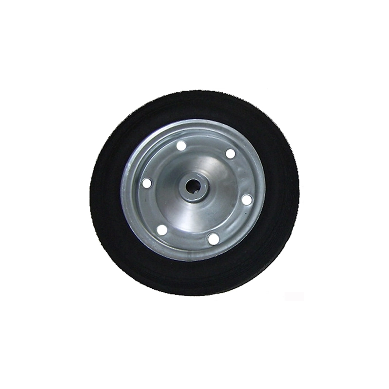 Ruota di ricambio per betoniere. Gomma piena. Diametro esterno mm 385, spessore mm 90, diametro perno mm 43.