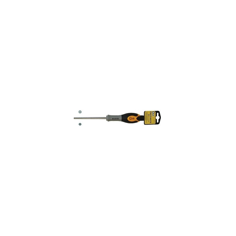 Lama in acciaio al cromo-vanadio. Impugnatura ergonomica bicomponente. Modello = misura mm./T = (taglio) PH = (croce)