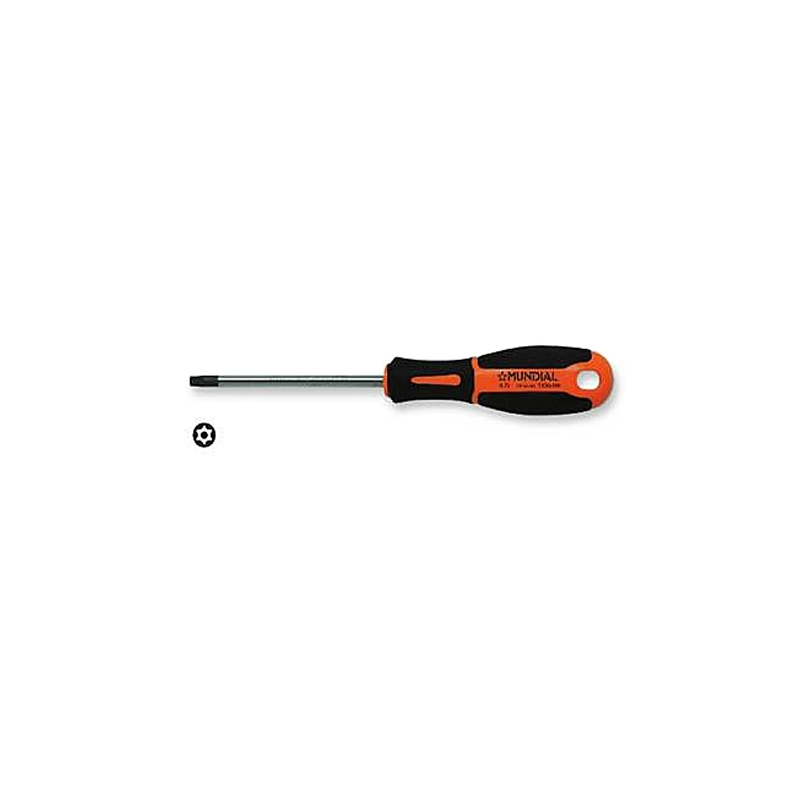 Cacciavite Torx, in acciaio cromo vanadium molibdeno. Impugnatura ergonomica bicomponente. Modello = Torx x lunghezza mm