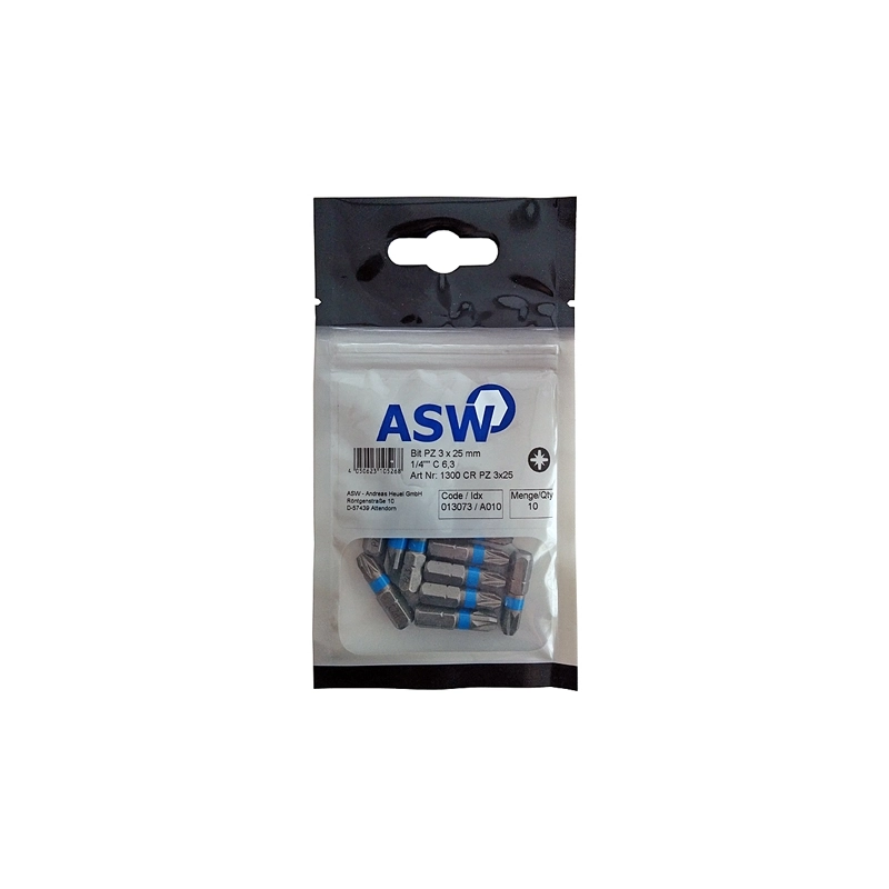 Bits da 1/4' impronta croce PZ, in acciaio antistrappo. Lunghezza mm 25. Finitura lucida con anello colorato. Modello = misura