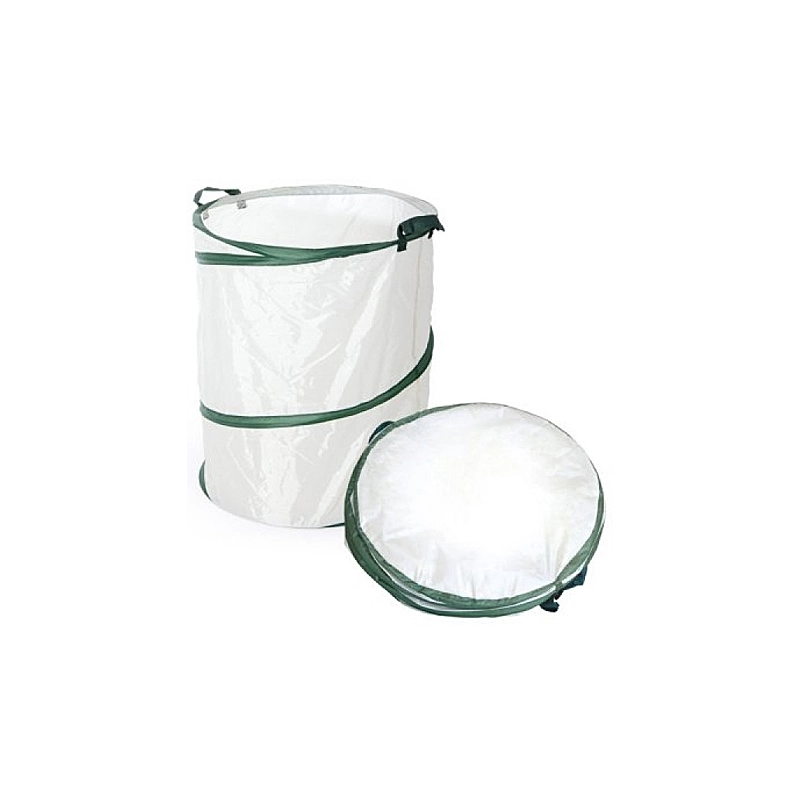 Raccoglitore pieghevole per erbe e foglie di giardino. In polietilene stabilizzato ai raggi UV. Altezza cm 70 diametro cm 56. Portata kg 20