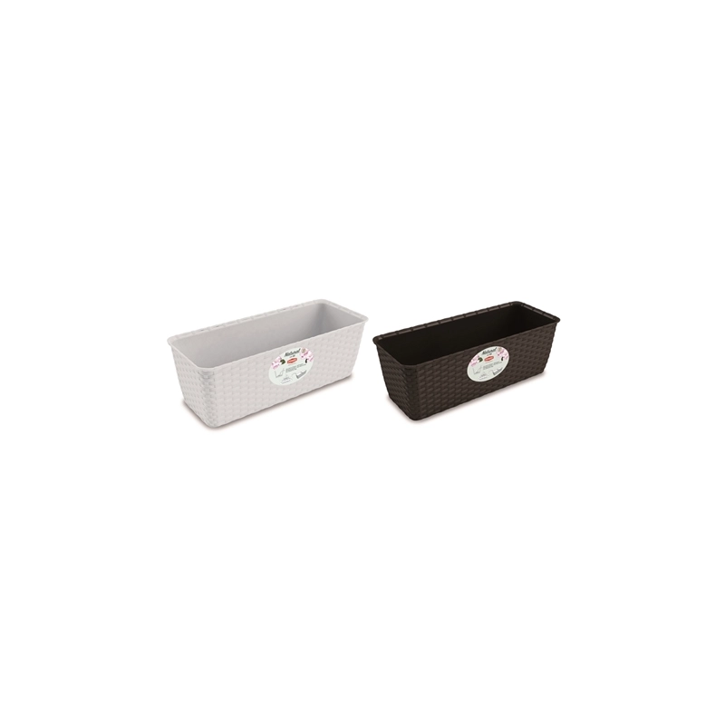 Balconette per fiori con riserva d'acqua. Finitura midollino intrecciato. Modello = dimensioni cm/colore