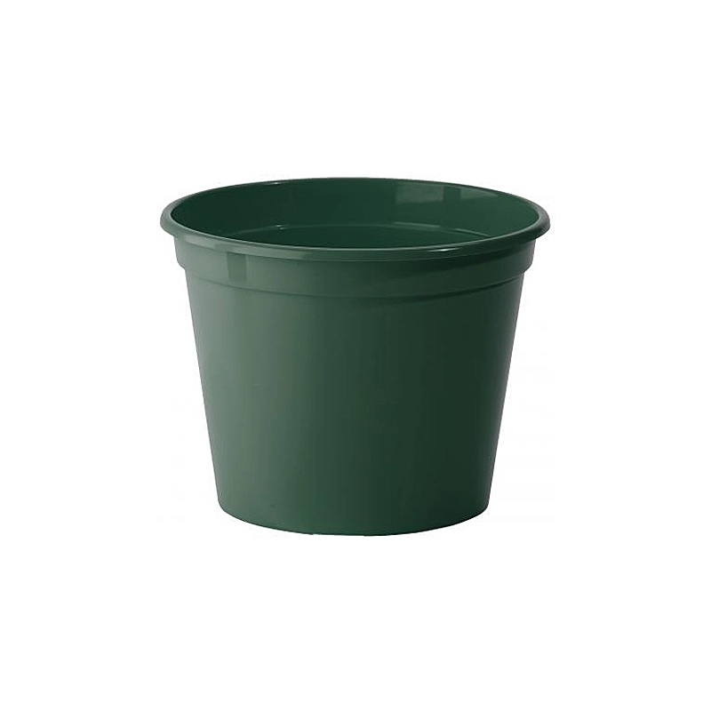 Vaso in polipropilene estremamente resistente agli urti ed alle basse temperature. 100% riciclabile. Impilabile. Con fori. Colore verde. Modello = diametro superiore cm/per sottovaso moplen cm
