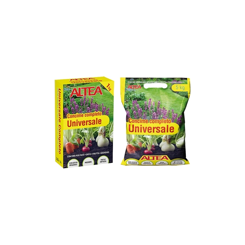 Concime organo-minerale bilanciato universale prontamente assimilabile per ortaggi, piante da frutto, giardino e tappeti erbosi. Dose consigliata: prato pre-semina 50/100 gr/m2, mantenimento 40/70 gr/m2, aiuole 50/80 gr/m2. Modello = contenuto kg