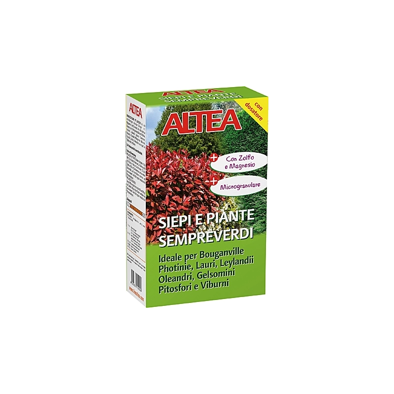 Concime microgranulare completo con magnesio e zolfo, ideale per la concimazioni di siepi e piante sempreverdi in vaso o in piena terra. Contenuto 1 kg.
