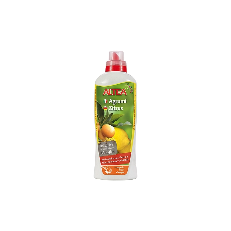 Concime liquido per piante di limone, arancio, mandarino, pompelmo e bergamotto. Elevato contenuto di potassio che ne favorisce la fruttificazione e lo sviluppo vegetativo. Con estratti vegetali che stimolano l'apparato radicale della pianta garantendo un migliore assorbimento degli elementi nutritivi. Contenuto 1 lt. Utilizzare 1 tappo misurino ogni 4 lt di acqua.