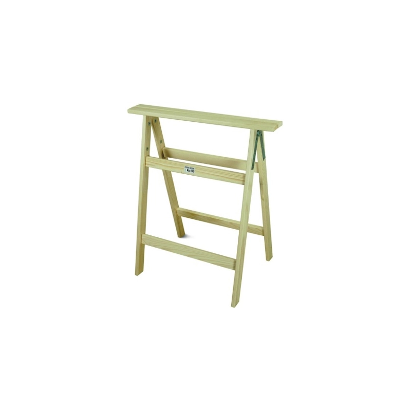 Cavalletto realizzato in massello di abete di prima scelta, dotato di dispositivo bloccaggio. I traversi sottostanti consentono di creare comodi piani di appoggio intermedi. Altezza cm 90. Portata collaudata kg 150. Prodotto Italiano.