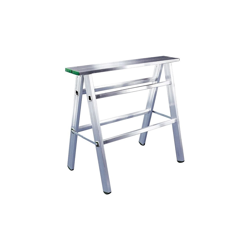 Cavalletto in alluminio chiudibile con cerniera in alluminio e compassi in acciaio antidivaricamento. Dimensioni 90x16,5 cm. Altezza 83,5 cm. Capacita' 300 kg. Peso 6 kg.