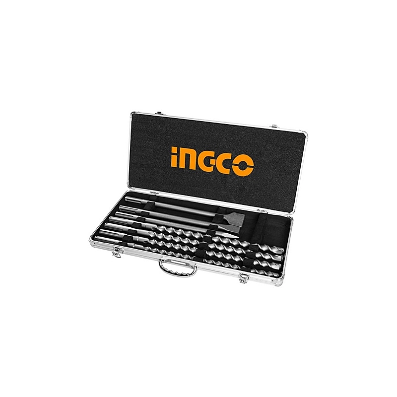 Set composto da 4 punte SDS MAX e 3 scalpelli SDS MAX. 4 punte SDS MAX: 16x540 mm, 18x540 mm, 20x540 mm, 22x540 mm. 3 scalpelli SDS MAX misure 18x400 mm - 18x400x25 mm - 18x400x50 mm. In valigetta di alluminio.