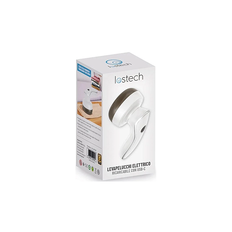 Levapelucchi a batteria. Con indicatore di carica. Fori di tre diverse dimensioni per rimuvere pelucchi di diverse grandezze. Ricaricabile tramite USB-C.