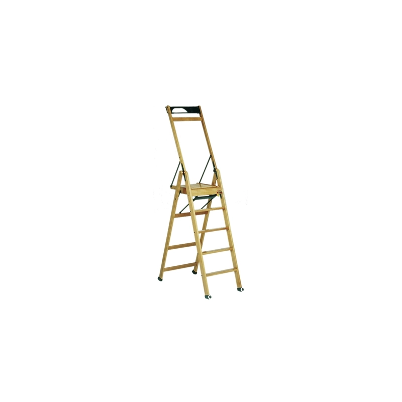 Scala pieghevole con ruote e doppio bloccaggio di sicurezza in legno massiccio. Colore faggio naturale. Modello = numero gradini/altezza max cm