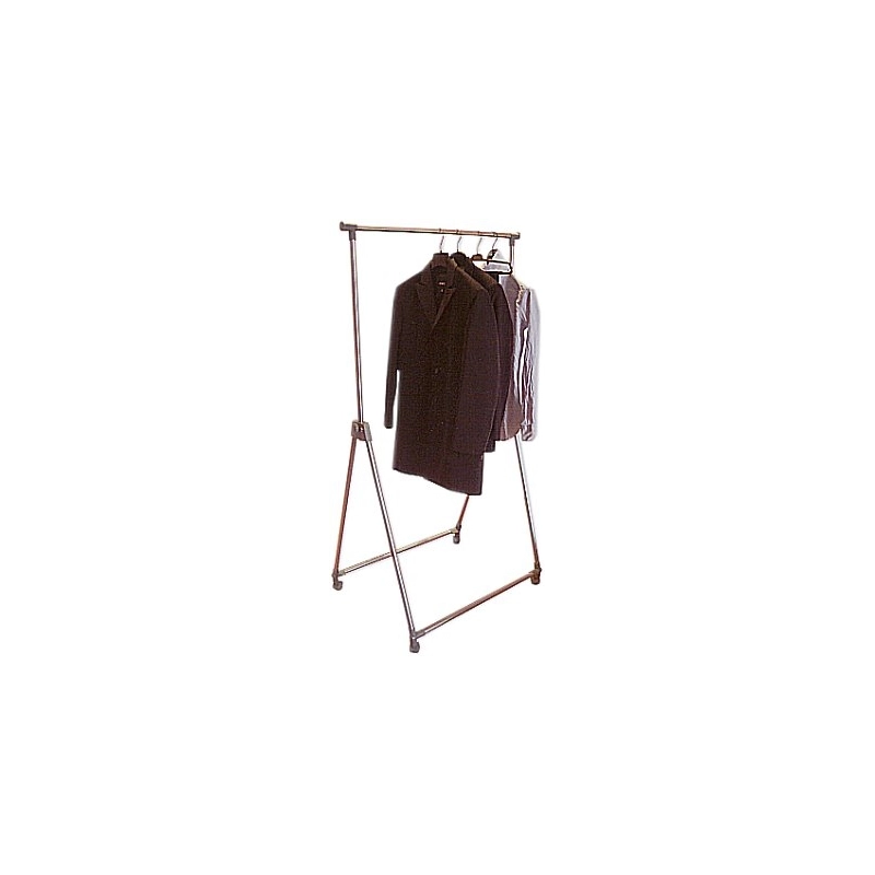 Attaccapanni in acciaio cromato con gambe richiudibili e rotelle per lo spostamento. Altezza regolabile da cm.100 a 170
