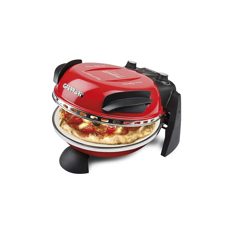 1200 Watt. Termostato regolabile fino a 400 gradi. Timer 5 minuti con segnale acustico. Piatto in pietra refrattaria, diametro 31 cm. Doppia resistenza riscaldante in acciaio corazzato. Indicatore luminoso di funzionamento. Dimensioni 33,5x20x35 cm.