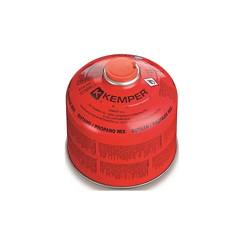 Cartuccia con valvola di collegamento filettata esterna 7/16'. Contiene una miscela di propano 30% - butano 70%. EN 417. Modello = contenuto gr