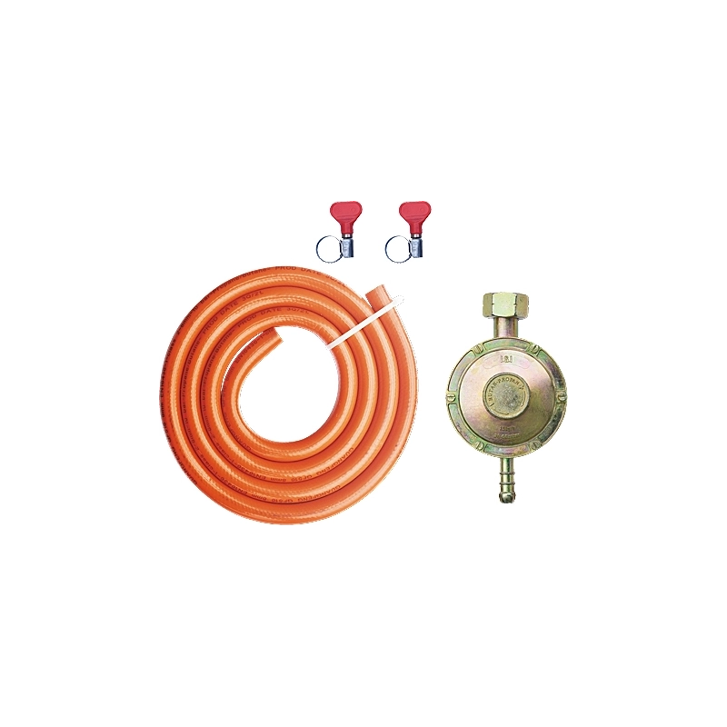 Regolatore bassa pressione con tubo da 1,5 mt, chiave per bombola e fascette. Modello = tipo taratura