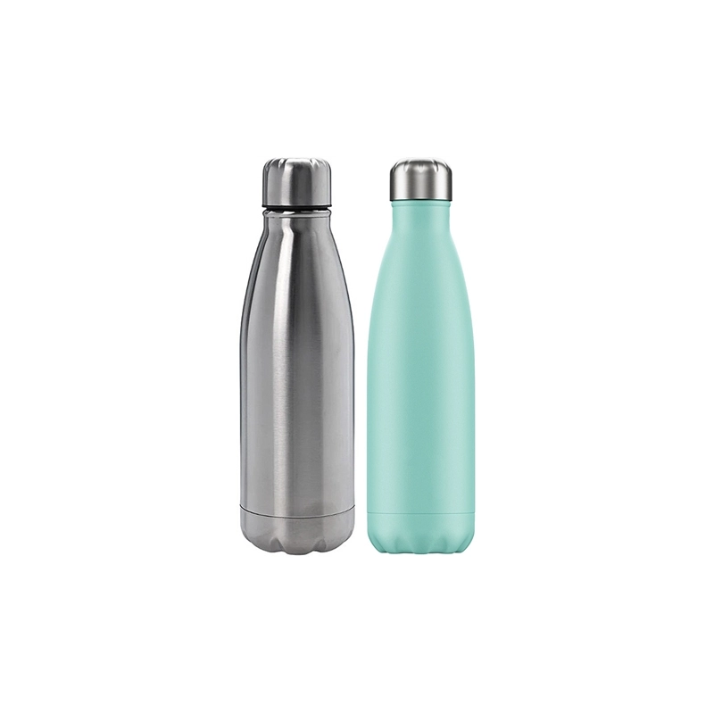 Bottiglia termica in acciaio inox, con tappo a vite ermetico salvagoccia. Contenuto ml 500. Disponibile in finitura inox o colorata (4 colori assortiti). Modello = finitura