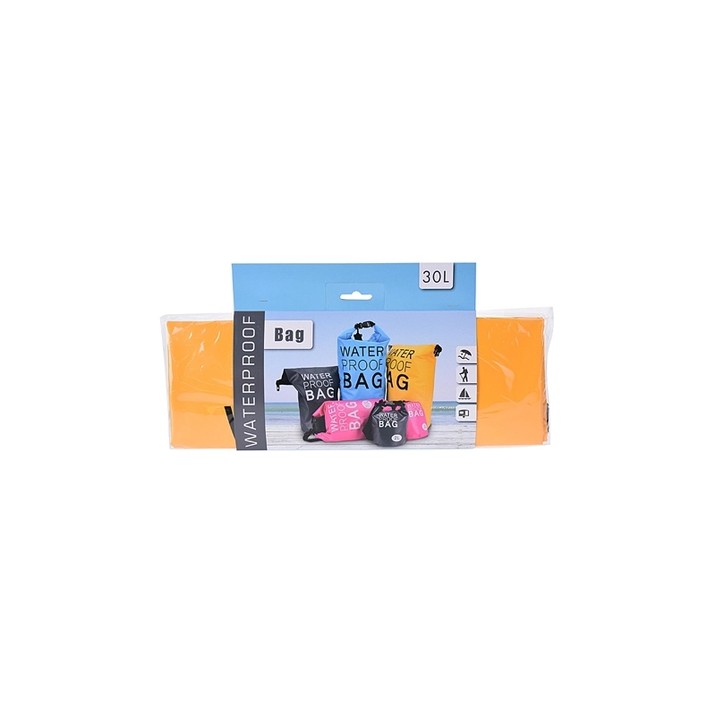 Borsa impermeabile con chiusura a clip. Dotata di moschettone. Colori assortiti. Modello = capacita' lt/dimensioni cm