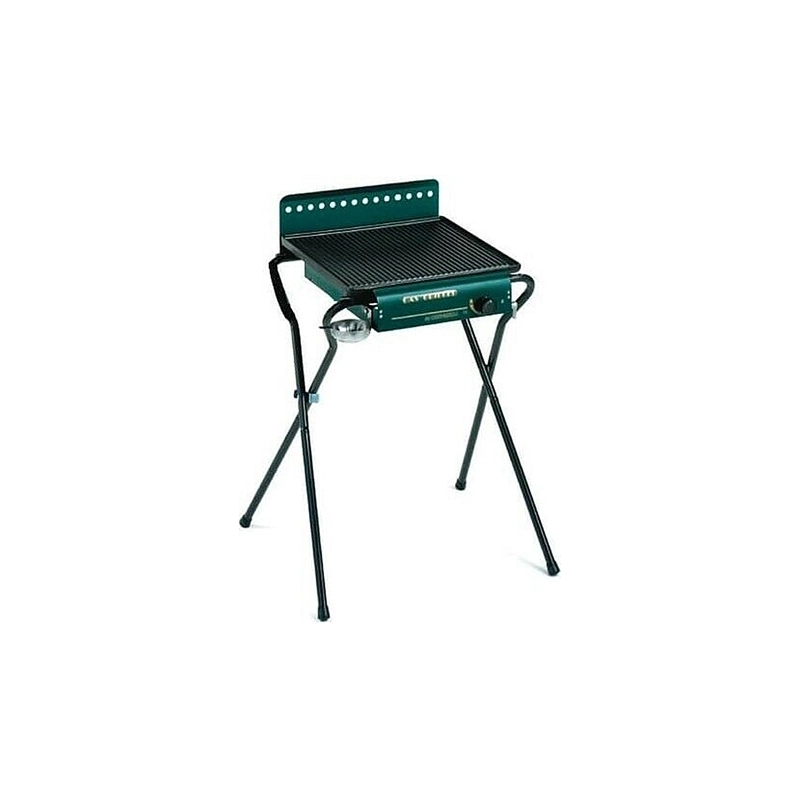 Barbecue con camera di combustione in acciaio verniciato. Bruciatore in lamiera alluminata ad accensione rapida a due rampe. Cappa paravento in acciaio verniciato. Gambe a cavalletto con innesto a baionetta. Ciotola raccoglisugo in acciaio inox. Potenza 3,7 kW. Piastra in ghisa vetrificata 40x43 cm. Dimensioni totali 56x61x84h cm. Peso 14,3 kg.
