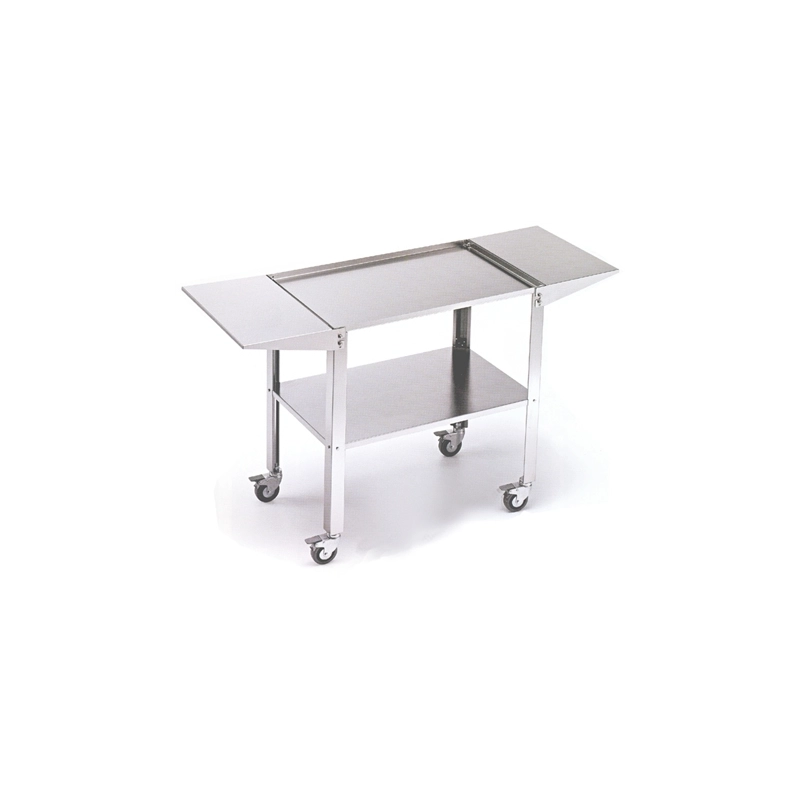 Carrello completamente in acciaio inox. Completo di 4 ruote pivottanti con freno. Ripiano in acciaio. Dotato di 2 mensole laterali richiudibili. Ideale per l'appoggio delle plance inox. Dimensioni cm 46x128,5x76h. Peso kg 16