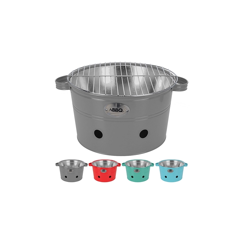 Barbecue tondo diametro cm 34x20h in acciaio verniciato con griglia cromata. Contenitore interno zincato. Colori assortiti.