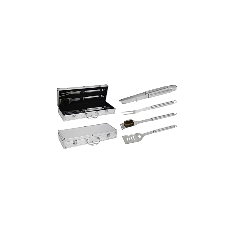 Valigetta alluminio cm 43x16x8 completa di 4 utensili per barbecue in acciaio inox.