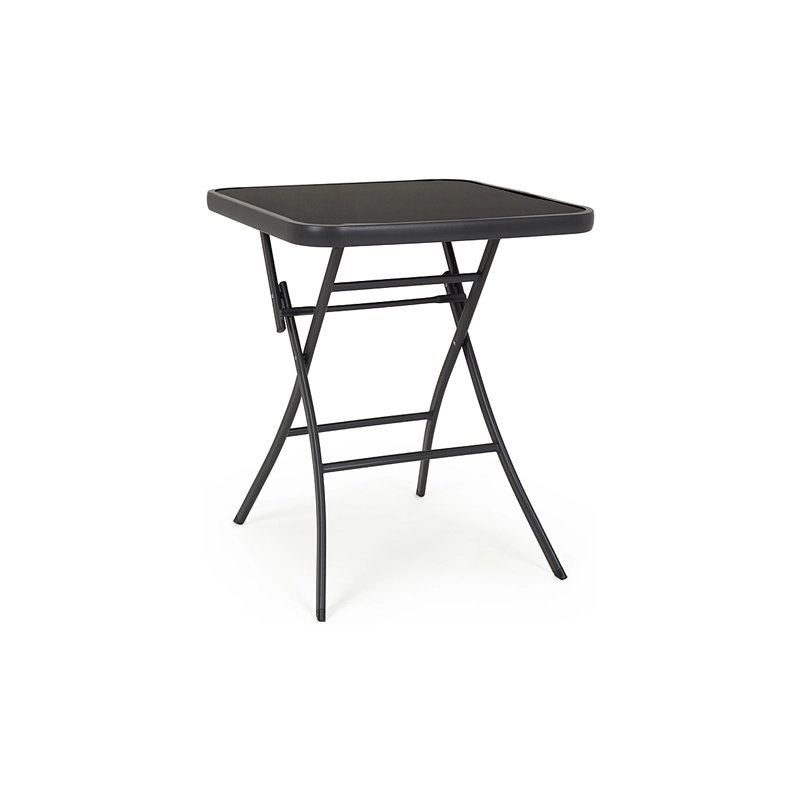 Struttura in acciaio verniciato a polvere epossidica. Piano in vetro temperato 5 mm. Colore grigio. Misura 60x60x70h cm.