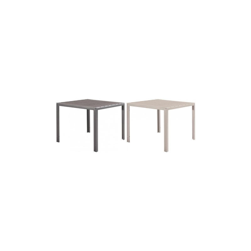 Tavolo quadrato con top in plastica HDPE effetto legno e struttura in metallo verniciato. Dimensioni 78x78x74h cm. Modello = colore