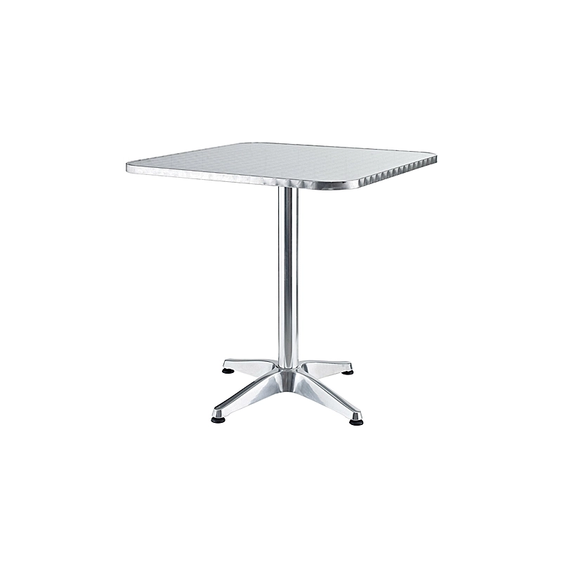 Tavolo quadrato in alluminio con piedini regolabili di dimensioni 60x60x70h cm. Ideale anche per uso esterno, perfetta per bar e terrazze.