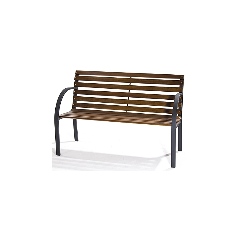 Panchina 2 posti con struttura in tubolare di metallo verniciato nero e doghe in legno naturale, semplice e robusta. Dimensioni 120x62x82h cm.